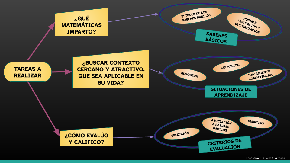 Siguiendo la filosofía del esquema anterior, en este video se presenta una propuesta de elaboración de la programación. El planteamiento se realiza bajo la normativa andaluza. La principal diferencia con la normativa estatal, es la asociación de los saberes básicos mínimos con los criterios de evaluación, por lo que en las comunidades en las que no existan estas relaciones, tendrán que ser añadidas. Esta propuesta se basa en asociar las situaciones del aprendizaje a los saberes básicos, y luego seguir el desarrollo curricular para determinar el resto de elementos.